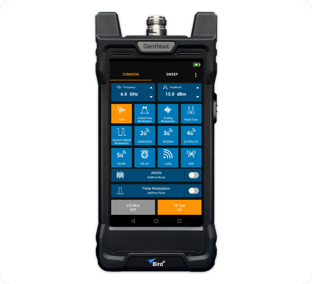 The GenHawk™ GH-60 allows truly portable RF signal generation from 10 MHz to 6 GHz, (optionally 300 kHz to 6.5 GHz). Included Continuous Wave (CW) output allows for simple test signals for antennas or RF systems while modulations easily replicate communication standards and real-world spectra so you can be assured of your device or system performance.